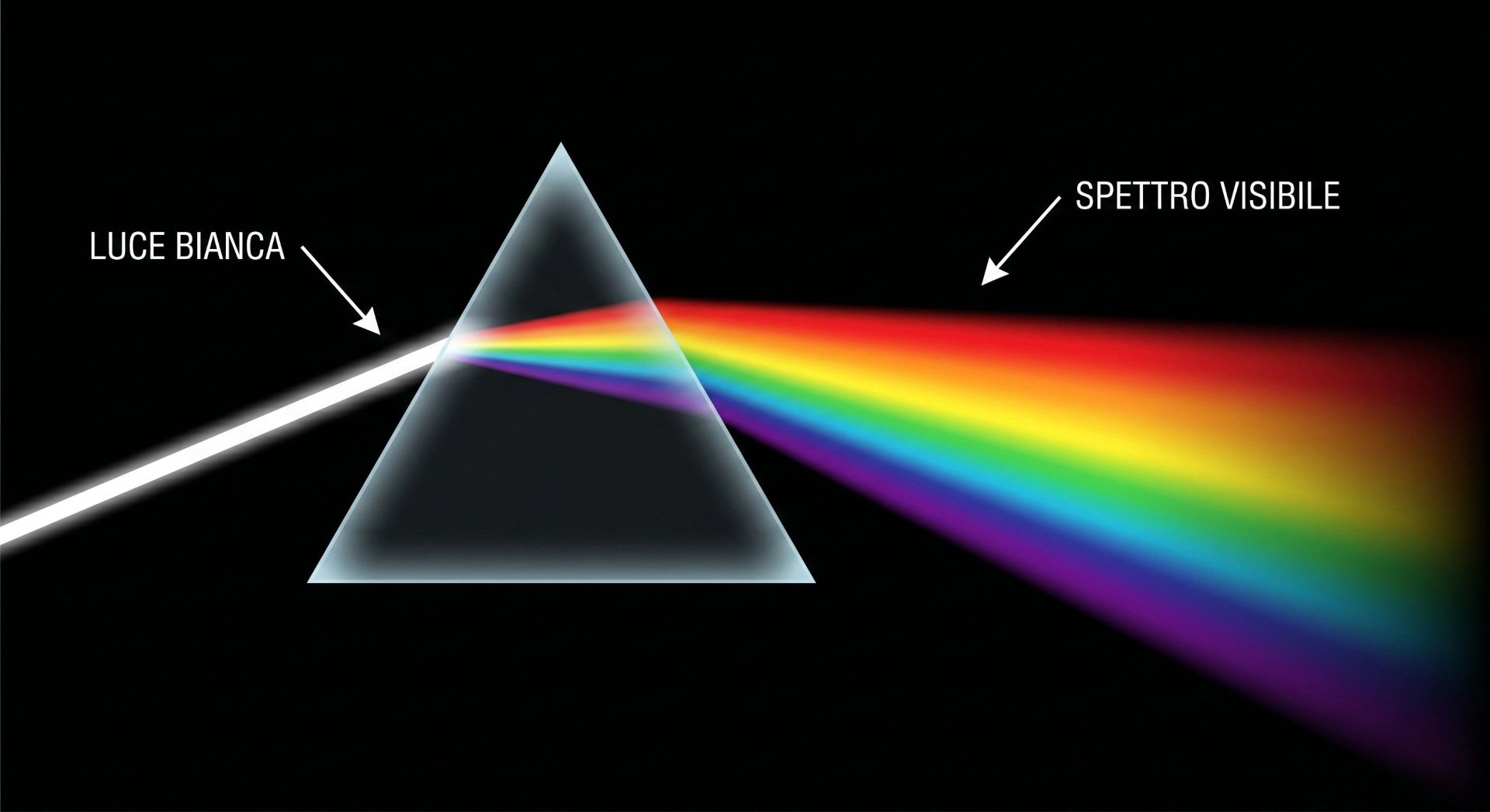 Quando la luce bianca attraversa un prisma o viene diffratta da una superficie, si scompone nelle sue componenti monocromatiche, rivelando una sequenza continua di tonalità che va dal violetto al rosso.